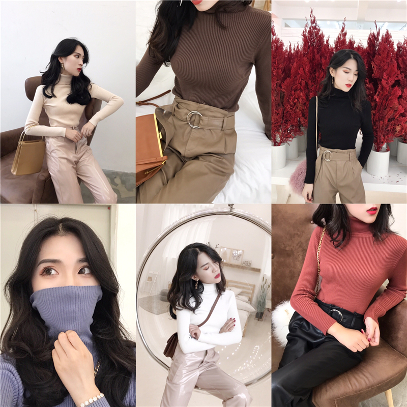長袖2018新款秋季上衣韓版修身百搭彈力柔軟高領復古針織衫打底女