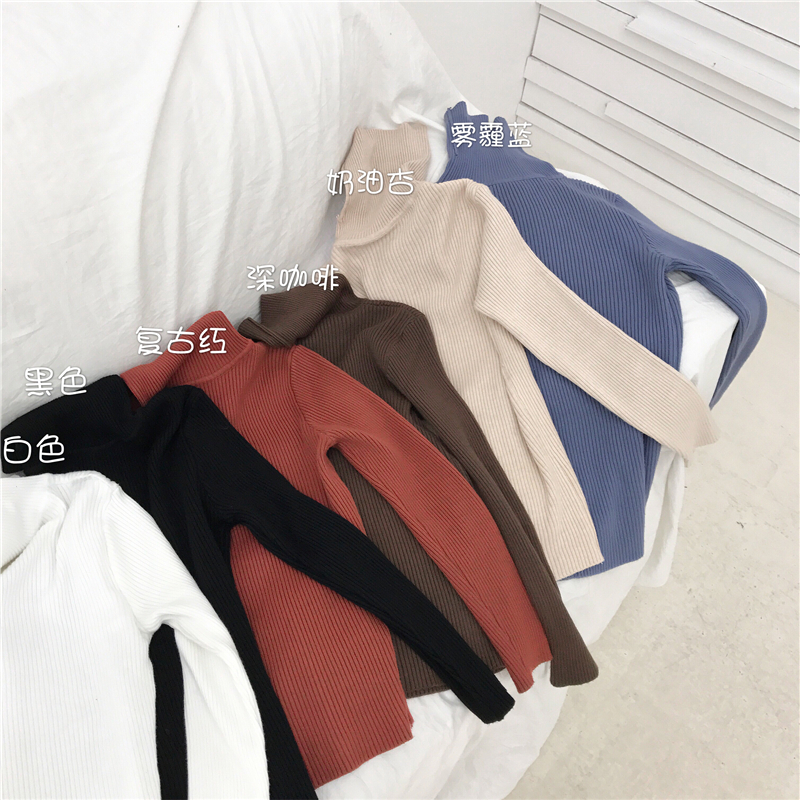 / 長袖2018新款秋季上衣韓版修身百搭彈力柔軟高領復古針織衫打底女