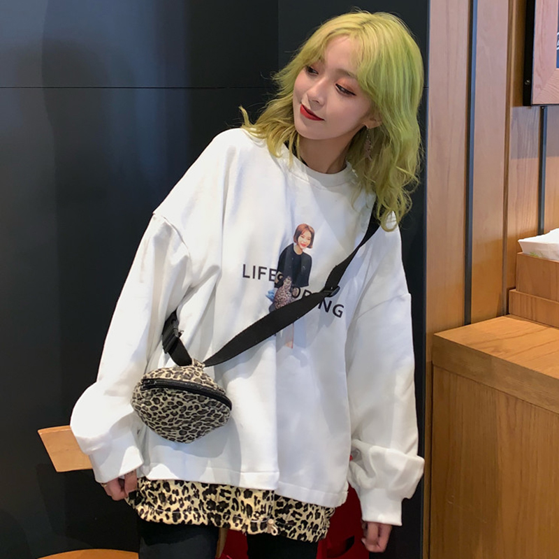 / 豹紋拼接圓領衛衣2018新款女秋冬裝港風抽繩時尚印花外套學生上衣