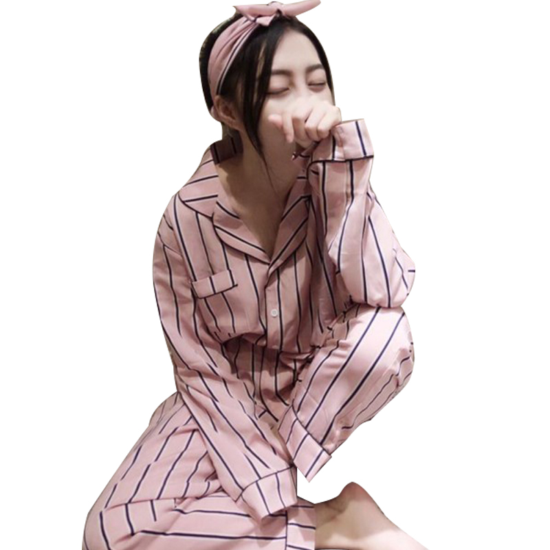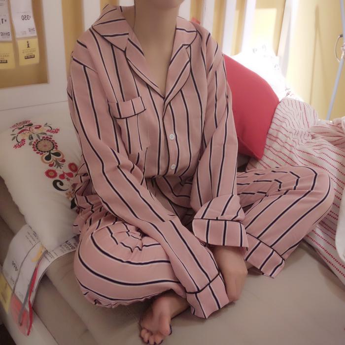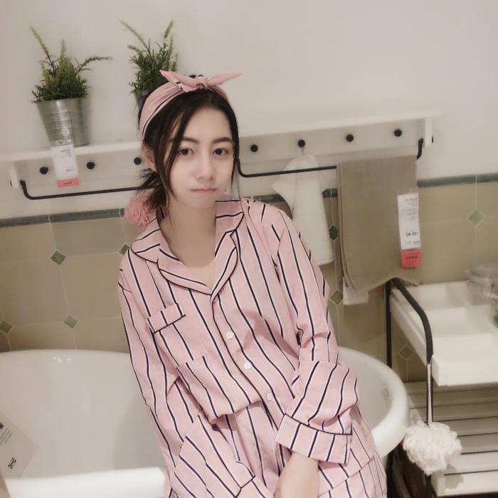 / 秋裝女裝時尚休閑寬松長袖襯衫+長褲睡衣三件套韓版家居服套裝潮