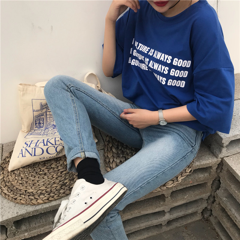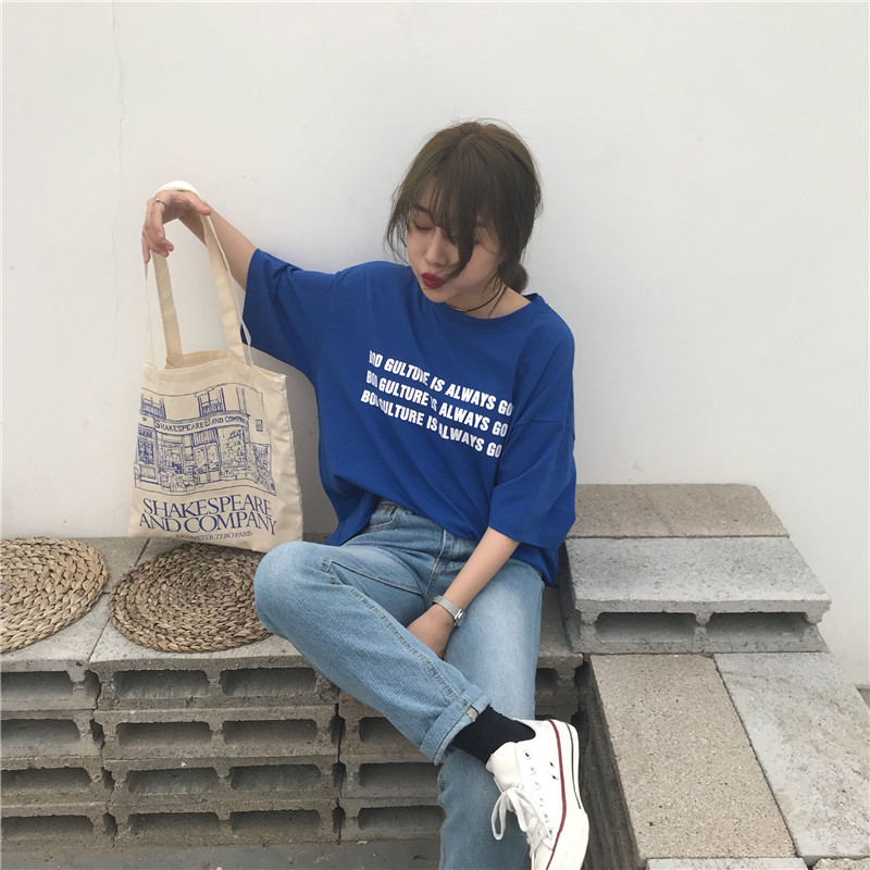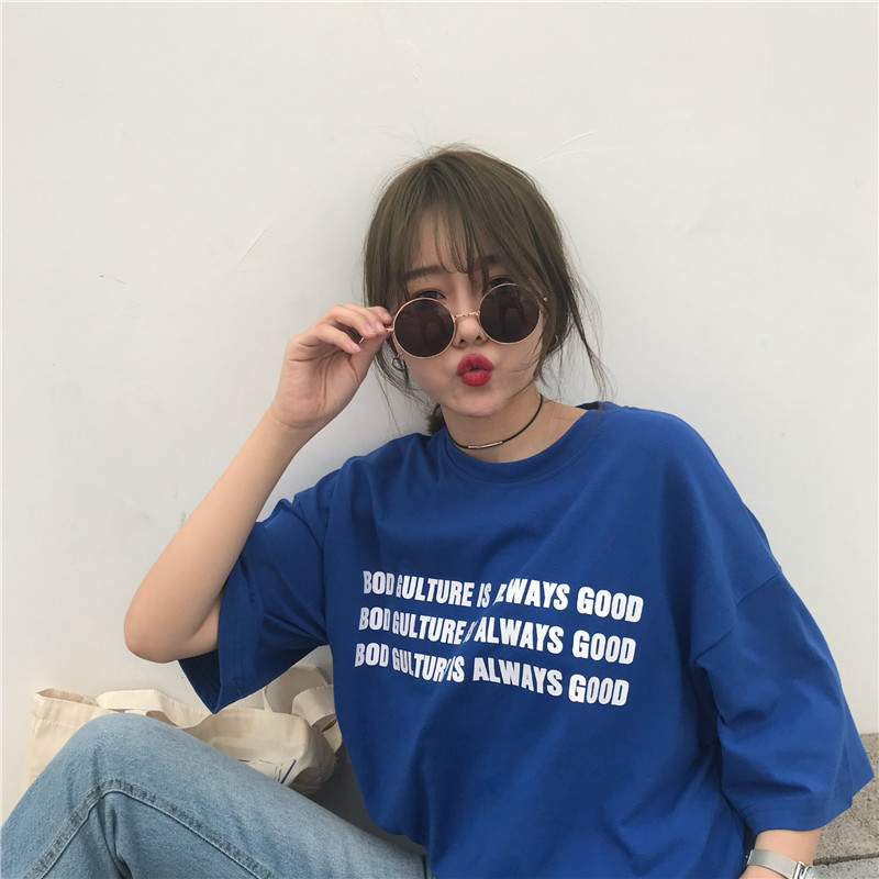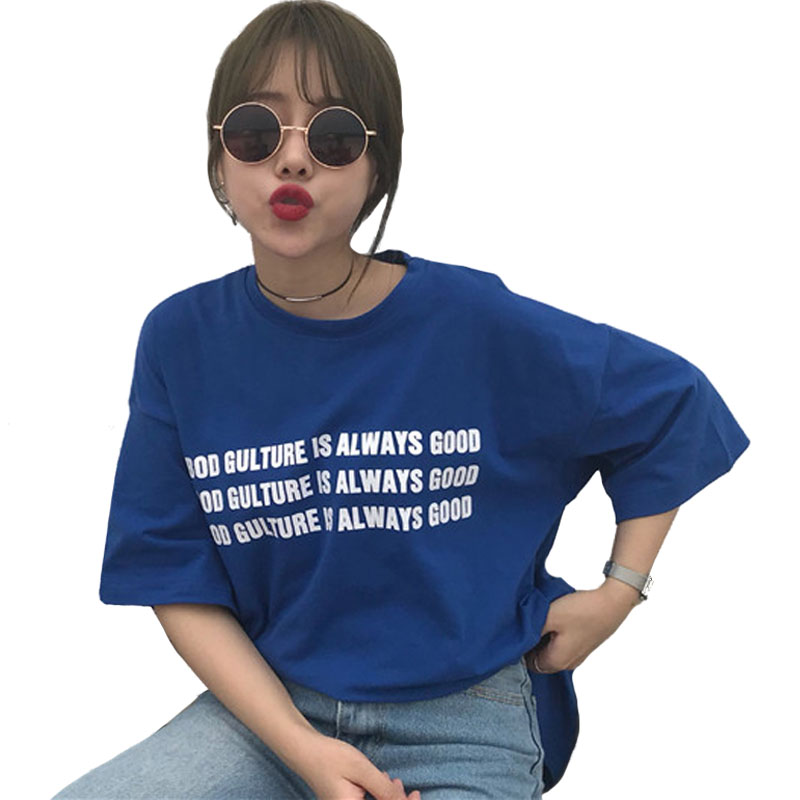 / 春夏女裝韓版原宿風百搭字母印花寬松短袖T恤中袖打底衫體恤上衣