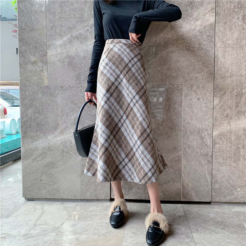杏色打底衫|黑色打底衫|藍色格半身裙|卡其格半身裙