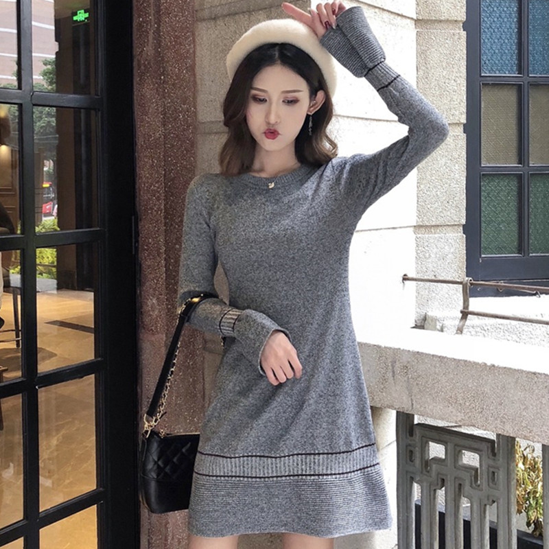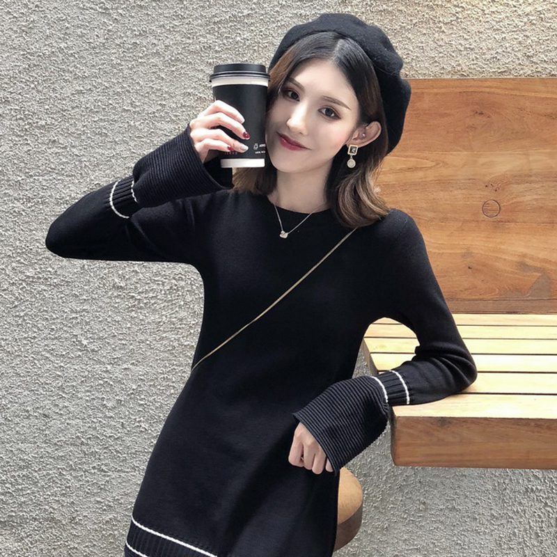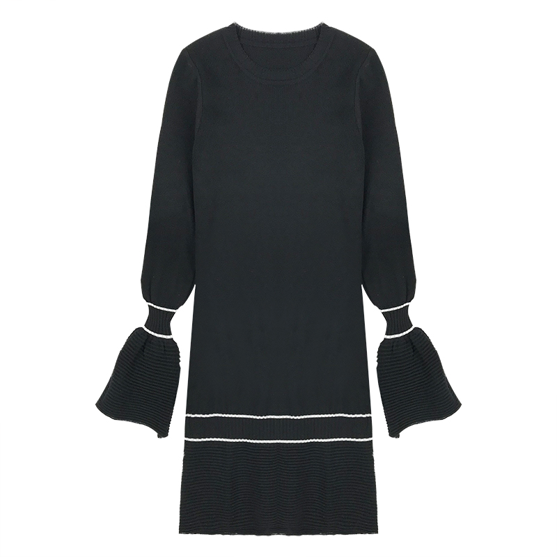 秋冬女裝2018新款韓版法式egg風黑色連衣短裙顯瘦針織打底a字裙子