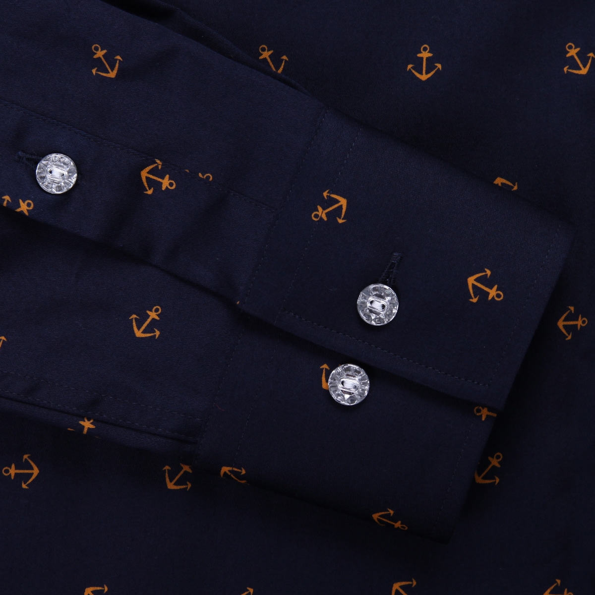 印花襯衫深海藍色絲光棉男士長袖韓版修身休閑小領襯衣時尚潮男裝