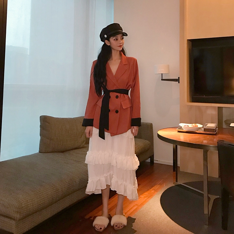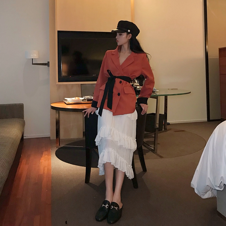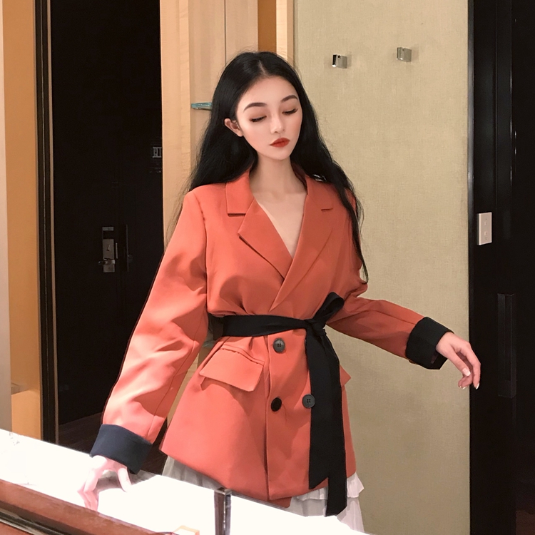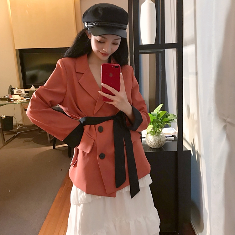 / 小香風時尚百搭秋季chic女翻領西裝新款綁帶收腰顯瘦氣質開衫外套