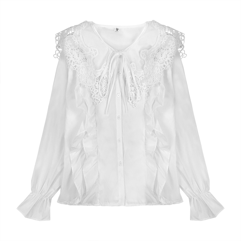 / 洋氣上衣秋裝女2018新款寬松顯瘦蕾絲花邊白襯衫氣質長袖娃娃襯衣