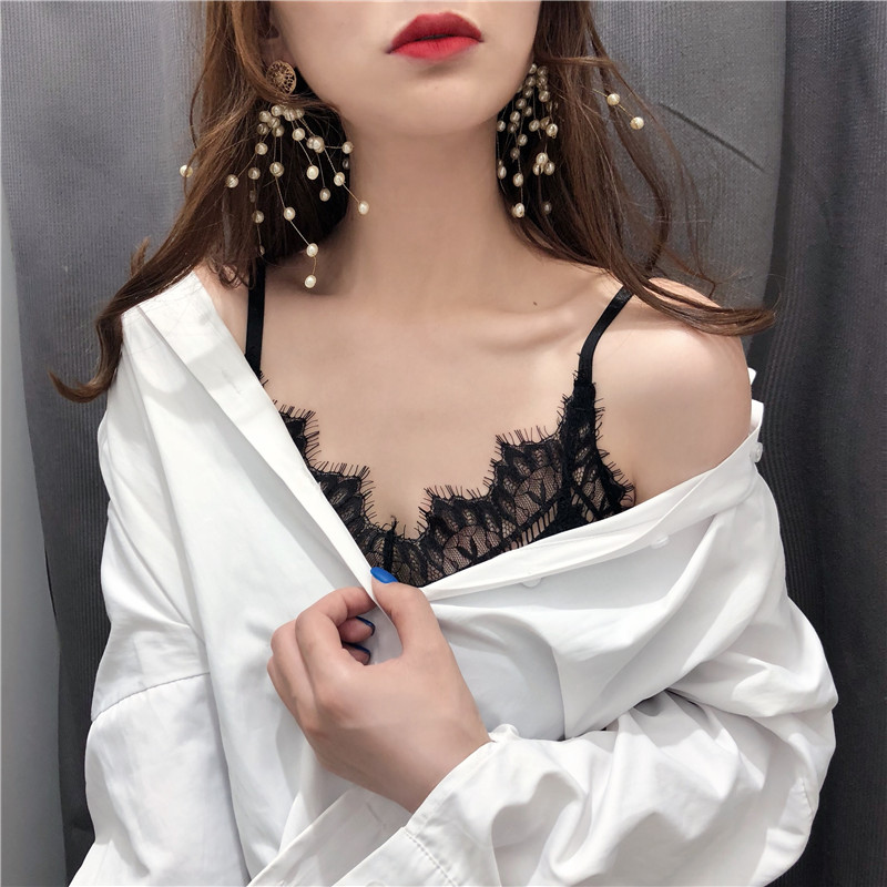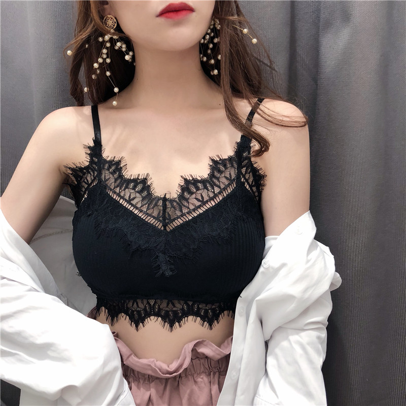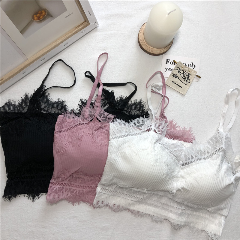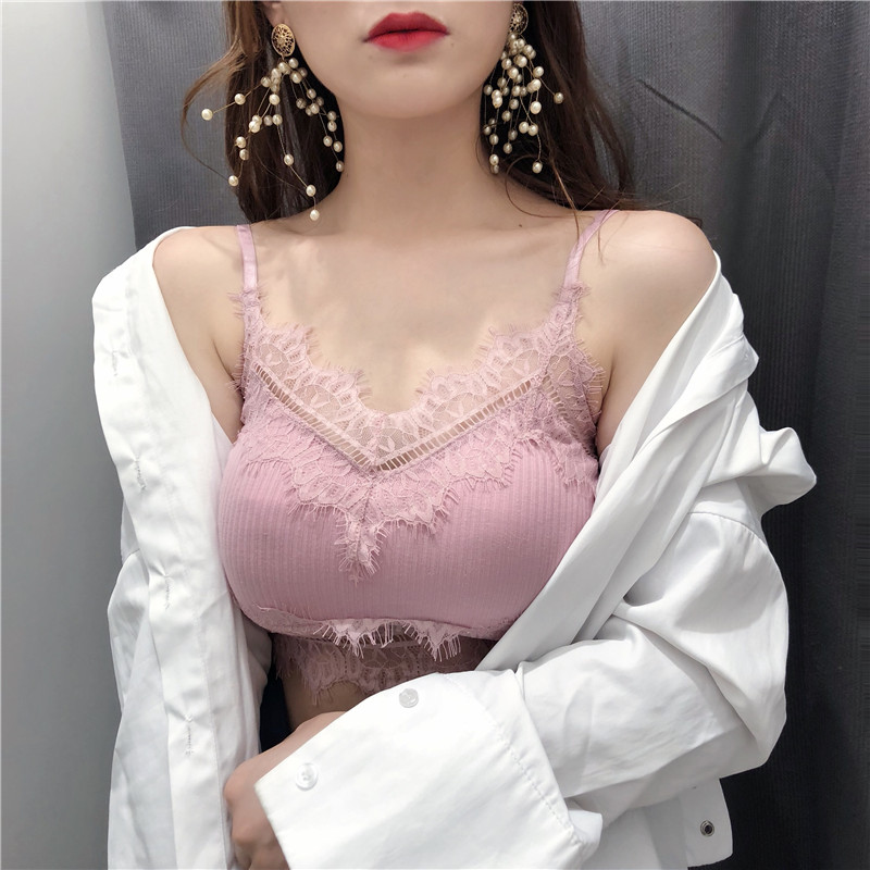 / 夏季2018新款氣質百搭海邊性感蕾絲純色吊帶小背心帶胸墊內衣女潮