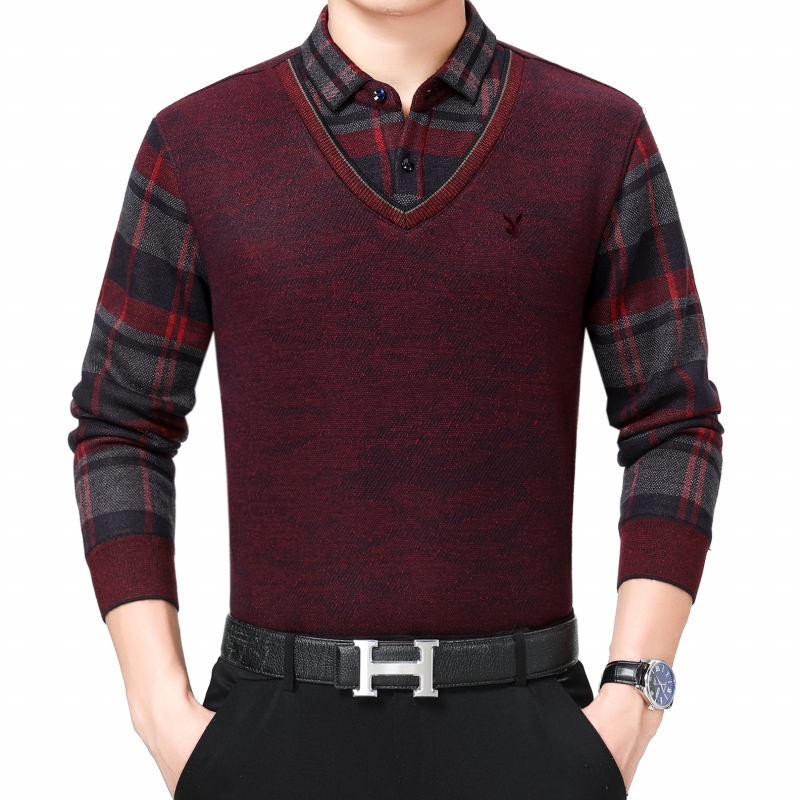 / 花花公子正品中年男士長袖保暖襯衫商務男裝假兩件加絨加厚襯衣冬