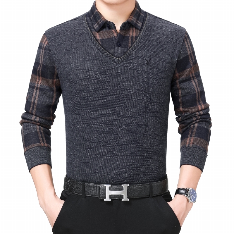 花花公子正品中年男士長袖保暖襯衫商務男裝假兩件加絨加厚襯衣冬