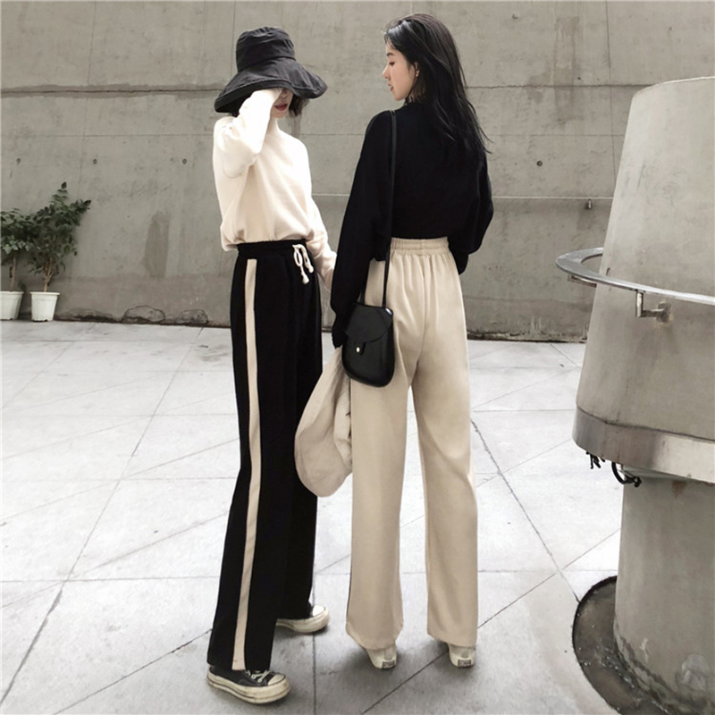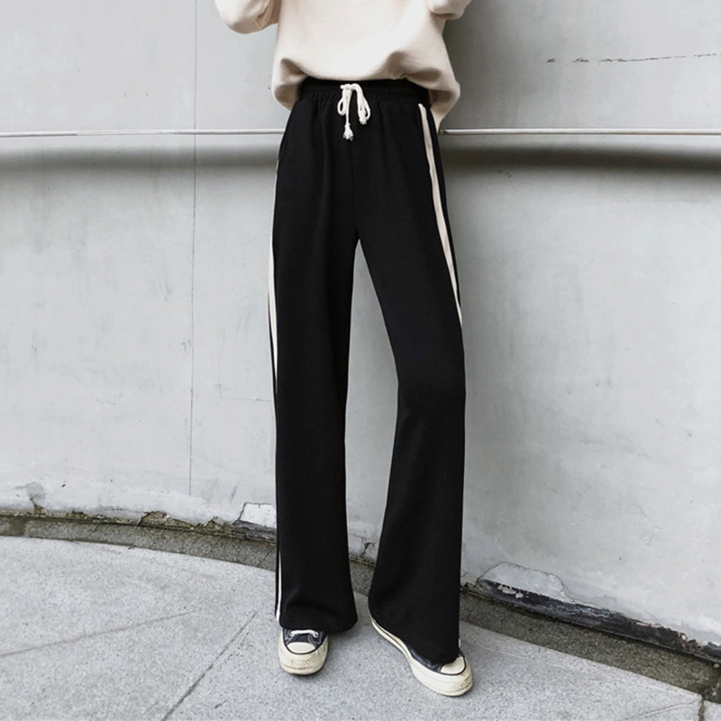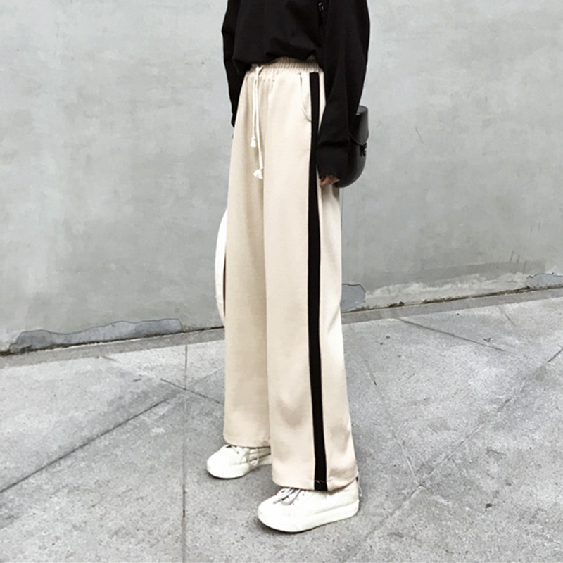 / 休閑長褲子秋裝女2018新款韓版個性拼色直筒褲學生時尚高腰闊腿褲
