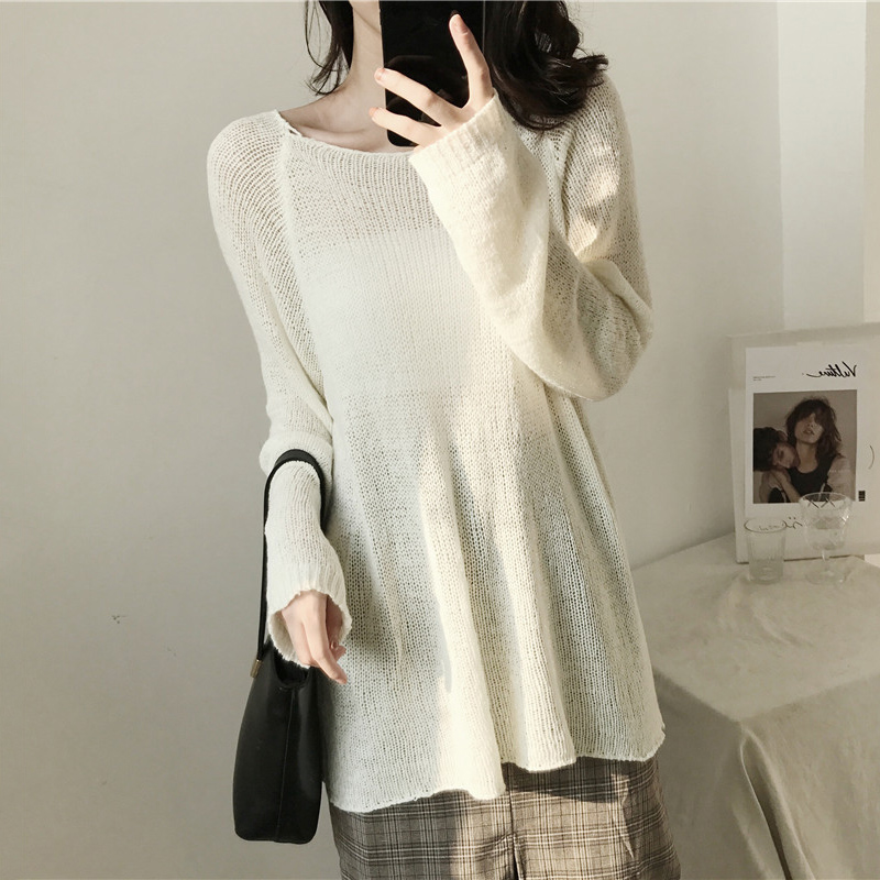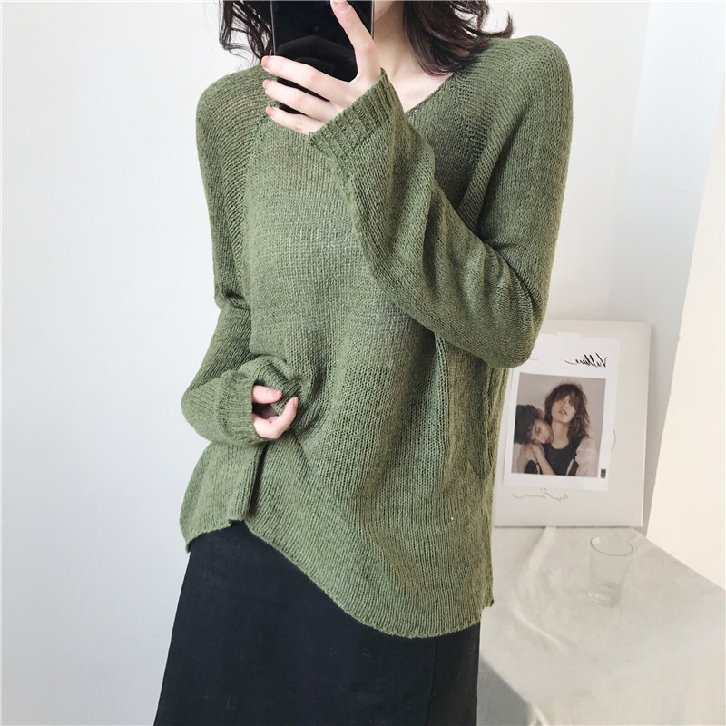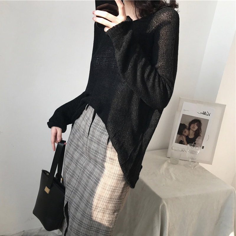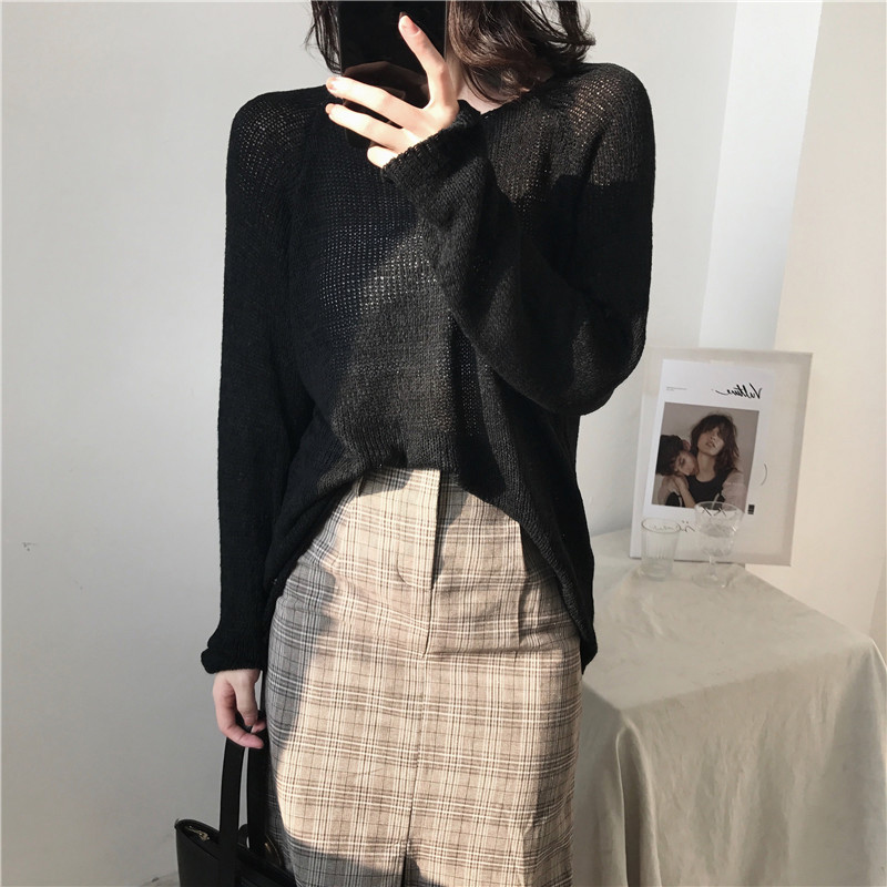 氣質針織衫女秋裝2018新款韓版港風圓領長袖毛衣簡約時尚黑色上衣