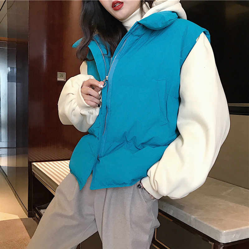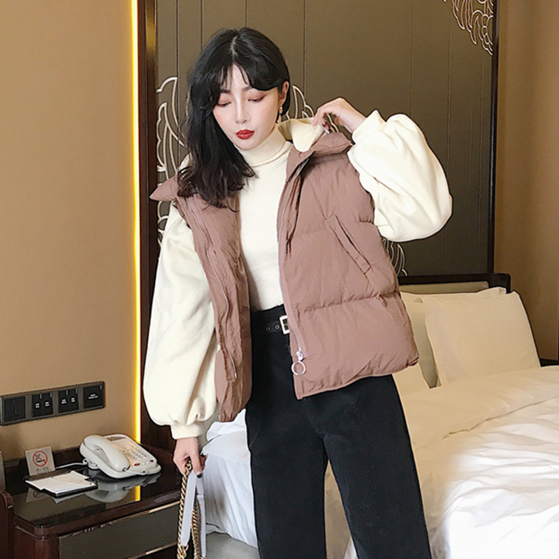 女冬裝2018新款韓版拼接長袖連帽棉衣棉服學生寬松加厚面包服外套