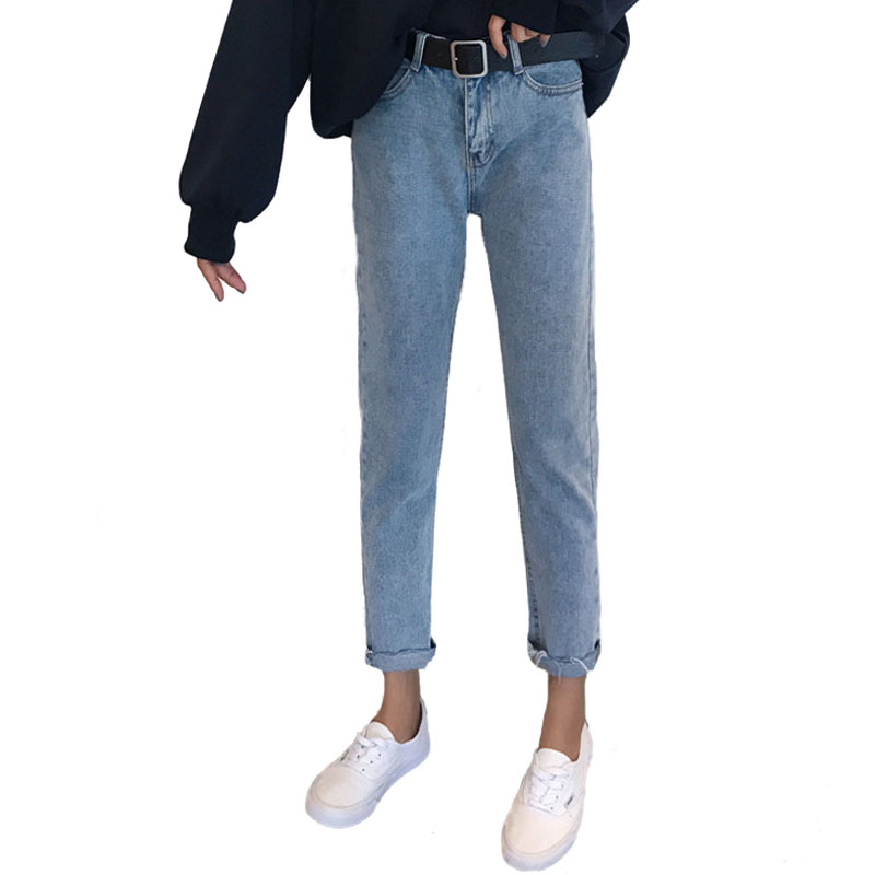 秋裝女裝韓版寬松百搭直筒褲高腰毛邊牛仔褲九分褲學生小腳褲長褲