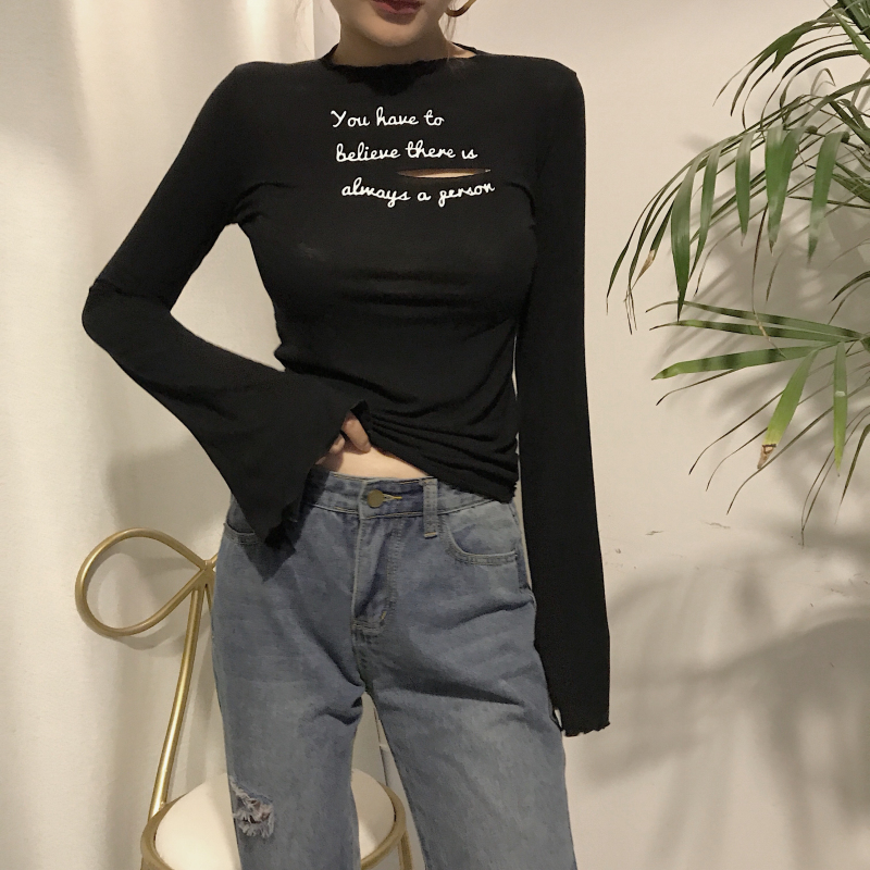 / 2018顯瘦百搭韓版秋季新款舒適純色花邊針織衫氣質長袖T恤打底衫