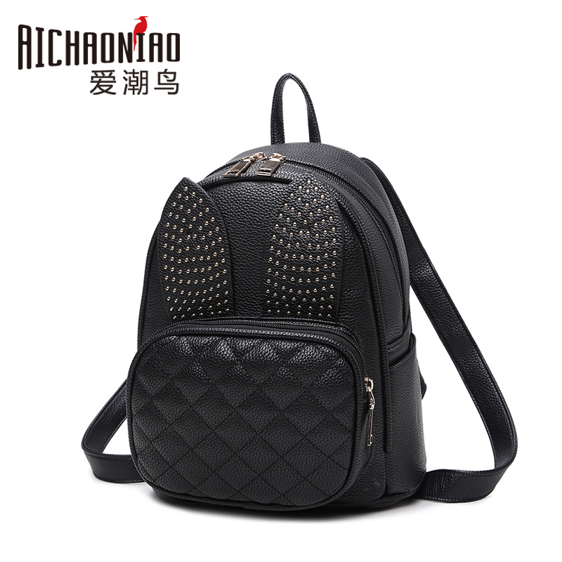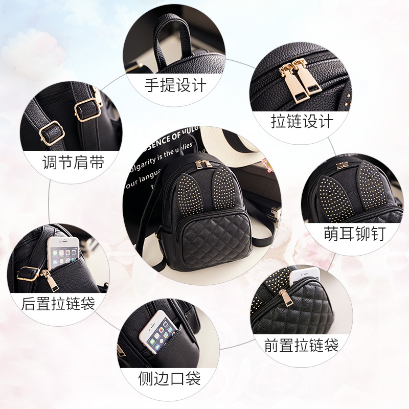 雙肩包女韓版pu時尚百搭個性歐美鉚釘小包包新款女士背包女潮