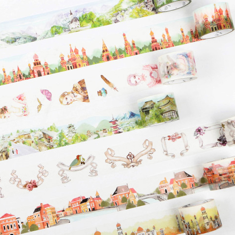 / 云木雜貨 各國建筑歐式復古手帳和紙膠帶羽毛英文手賬裝飾膠帶