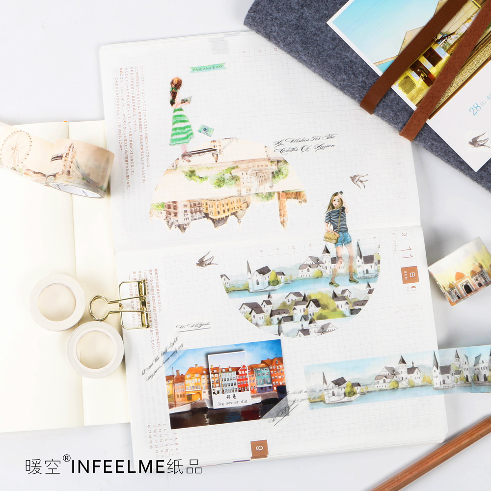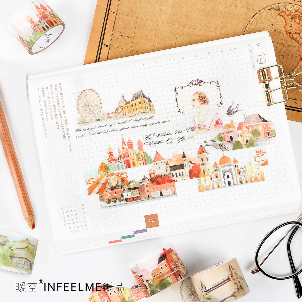 云木雜貨 各國建筑歐式復古手帳和紙膠帶羽毛英文手賬裝飾膠帶