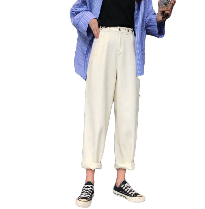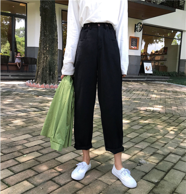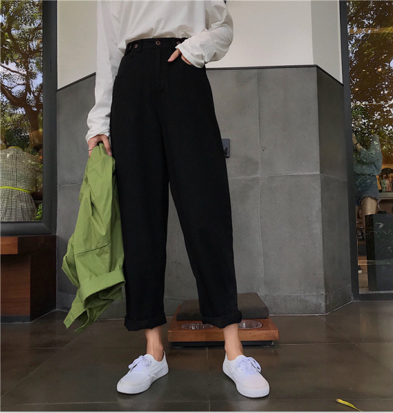 秋裝女2018新款復古港味九分褲學生韓版寬松高腰原宿直筒牛仔褲女