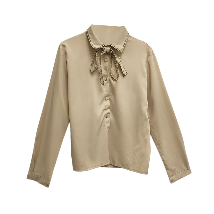 秋裝2018新款女裝韓國氣質寬松顯瘦系帶蝴蝶結襯衫女純色百搭襯衣