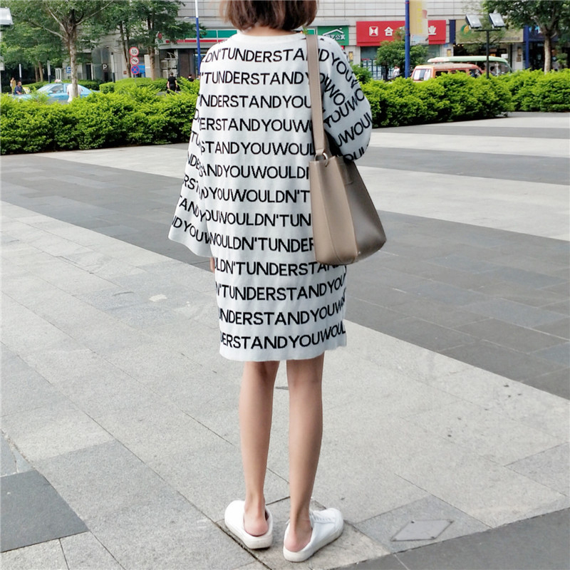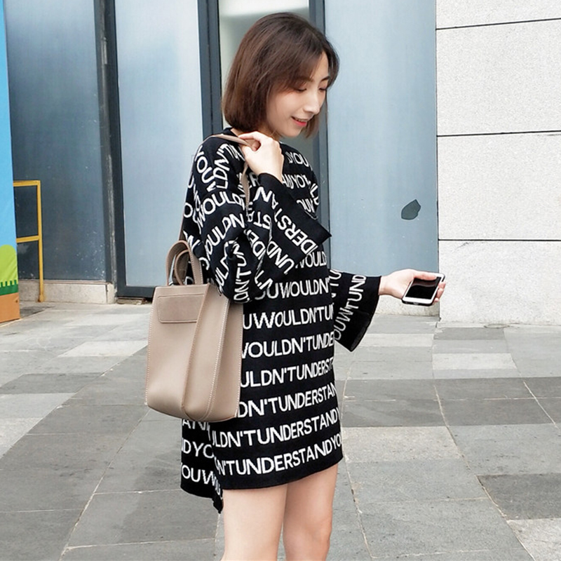 慵懶寬松長袖針織衫秋裝女2018新款韓版學生前短后長字母休閑上衣