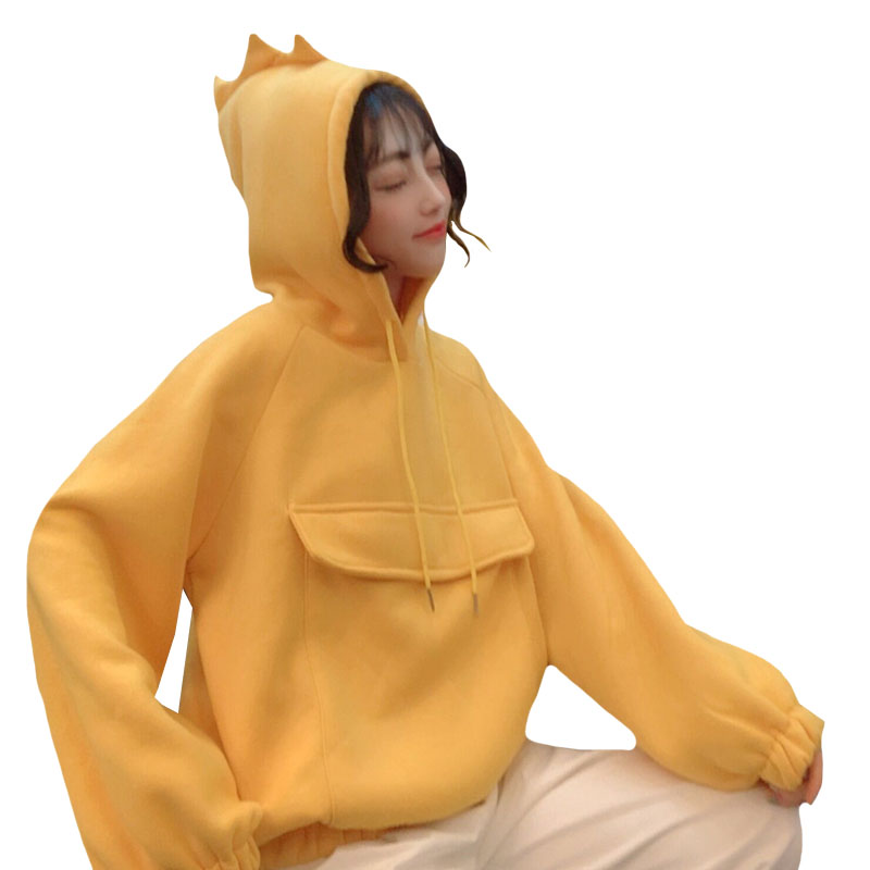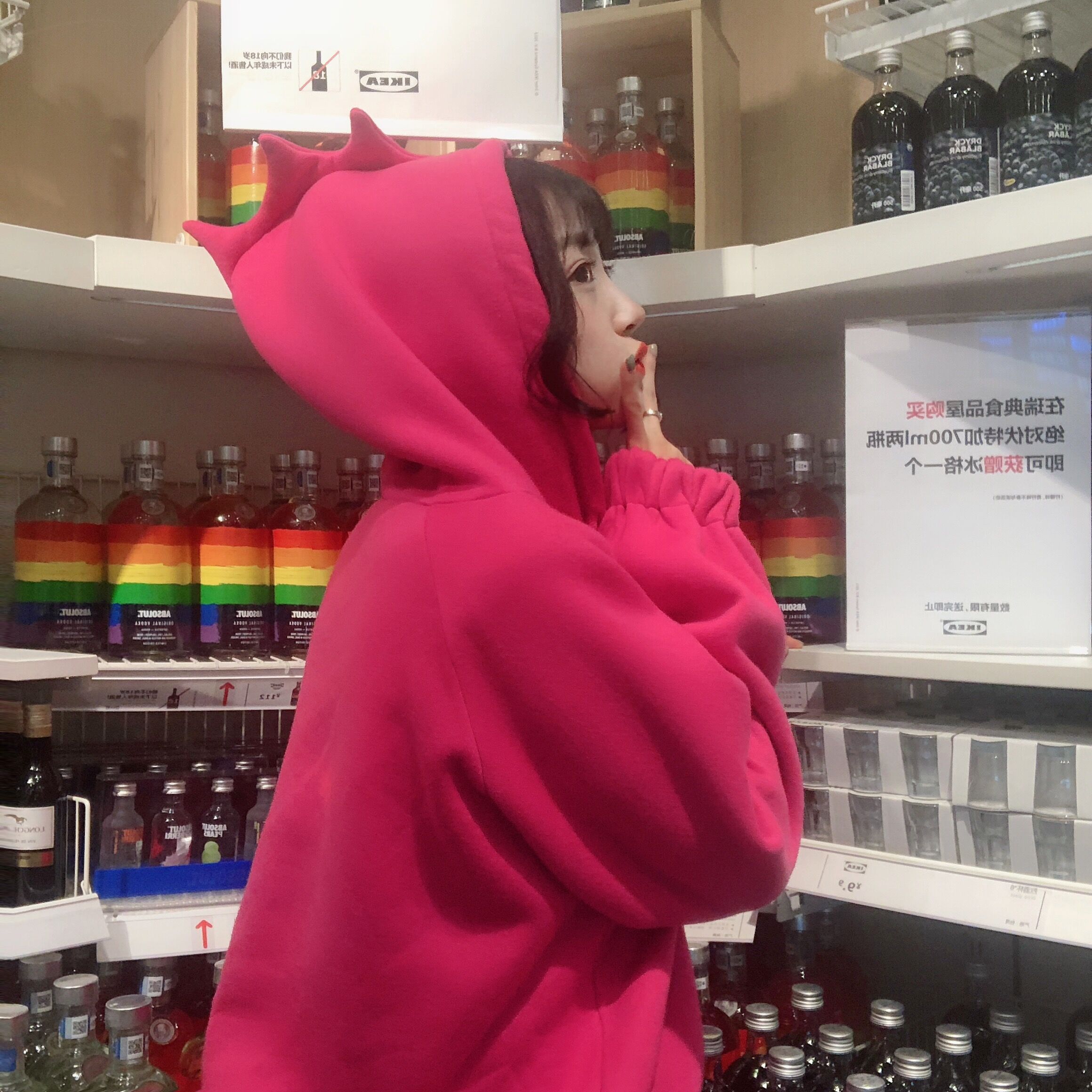 / 秋冬女裝韓版純色寬松加絨加厚可愛恐龍連帽套頭超火衛衣上衣外套