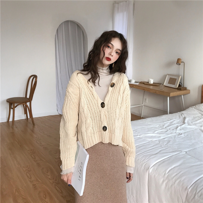 / 秋冬慵懶復古針織麻花開衫百搭高領打底中長款包臀針織裙時尚套裝