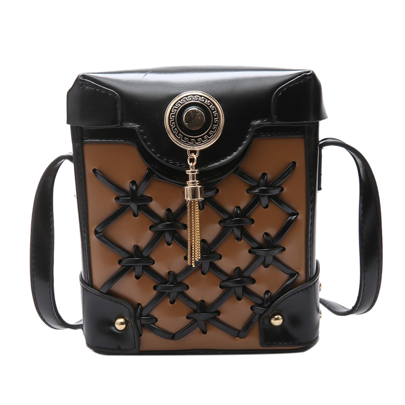 / 包包女新款潮撞色編織小箱子包流蘇單肩女包韓版斜挎包小方包