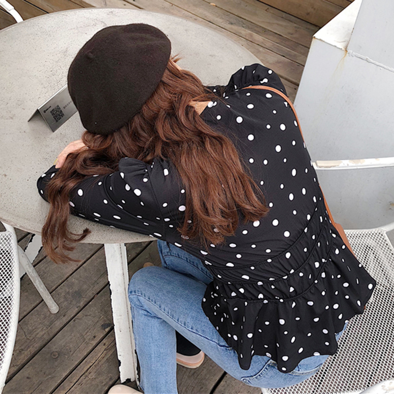 洋氣黑色波點上衣女秋裝2018新款氣質V領長袖荷葉邊娃娃襯衫襯衣