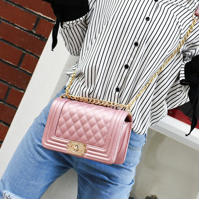 / 包包女新款潮果凍鏈條包韓版菱格小方包百搭單肩斜挎女包小包