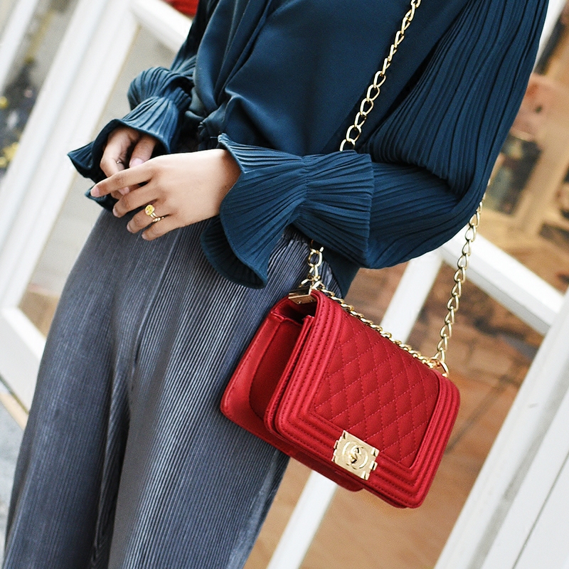 包包女新款潮果凍鏈條包韓版菱格小方包百搭單肩斜挎女包小包