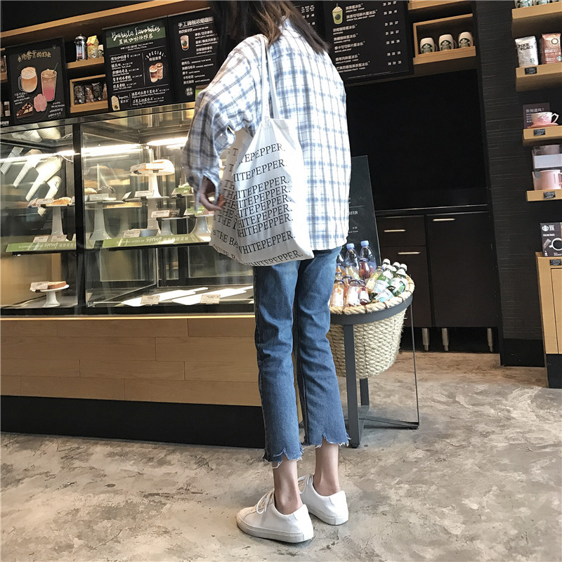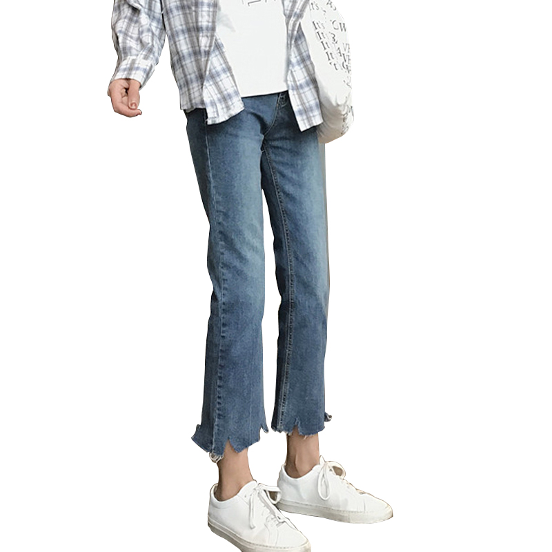 / 秋裝女裝韓版個性褲腳缺口寬松顯瘦直筒褲新款牛仔褲九分褲長褲潮