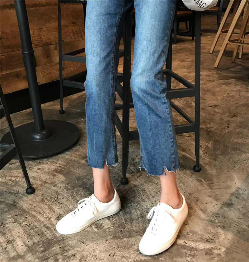 秋裝女裝韓版個性褲腳缺口寬松顯瘦直筒褲新款牛仔褲九分褲長褲潮