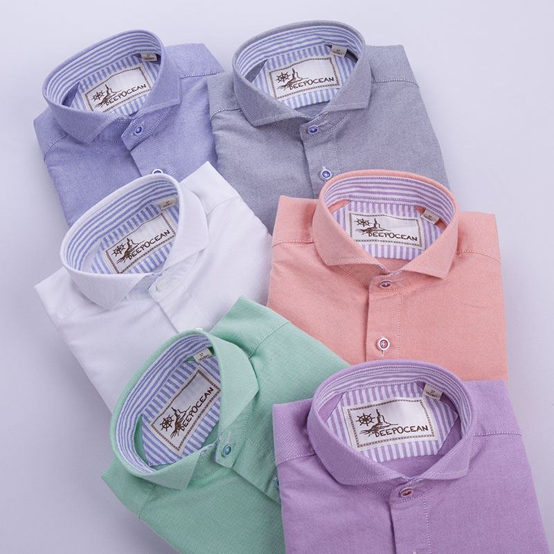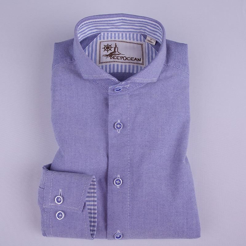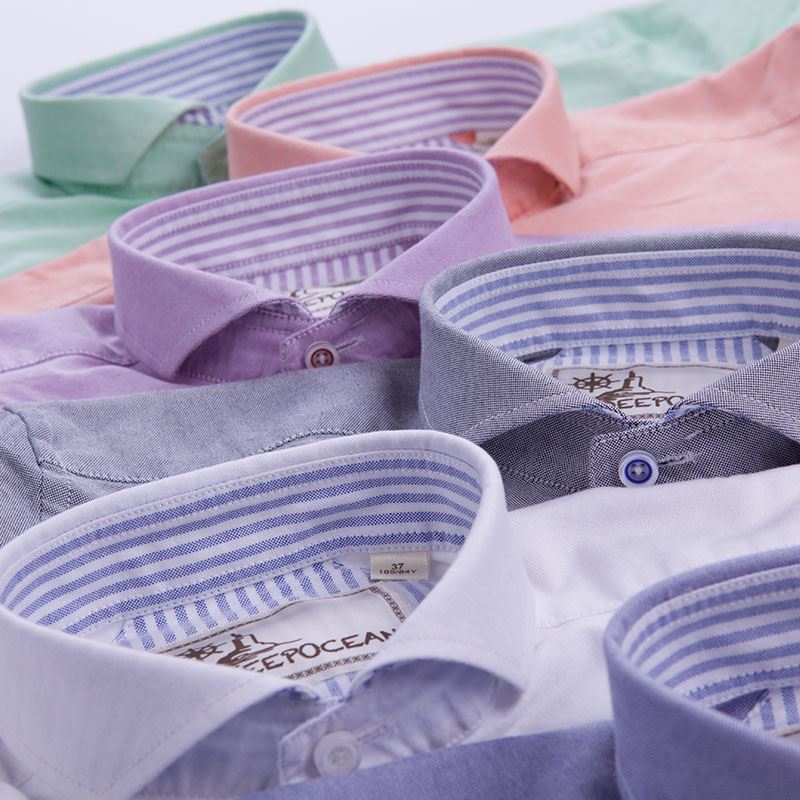 秋男裝襯衫精紡牛津紡純棉透氣修身純色男士長袖藍色溫莎領襯衣