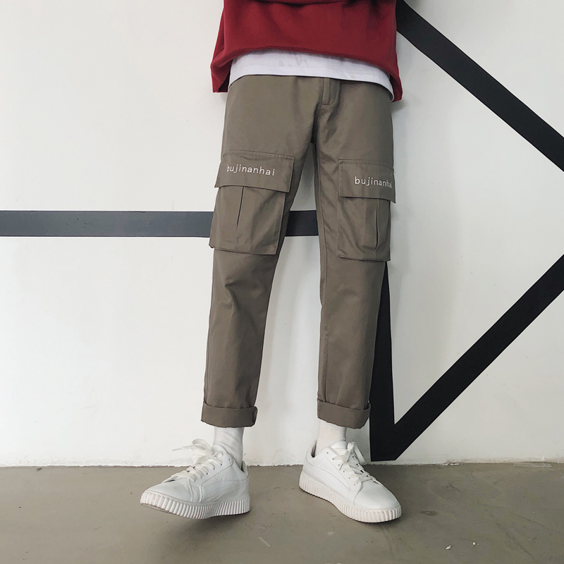 寬松休閑褲新款直筒褲潮流秋季工裝褲男裝褲子九分褲男士韓版長褲