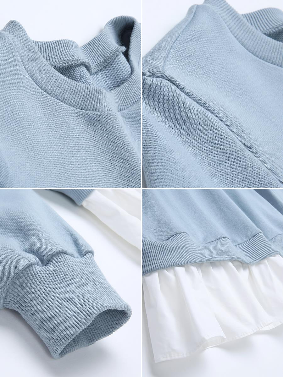 MG小象假兩件拼接衛衣女寬松秋冬2018新款字母刺繡休閑套頭上衣潮