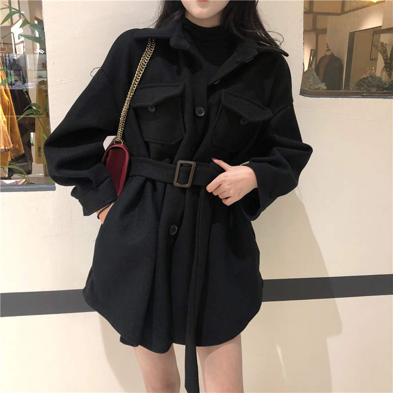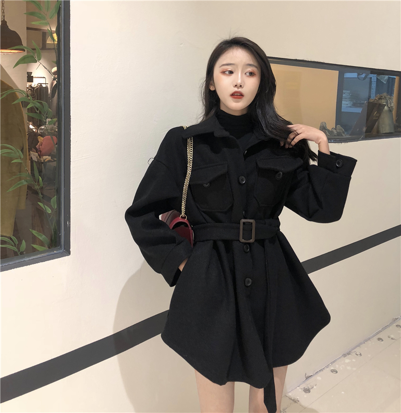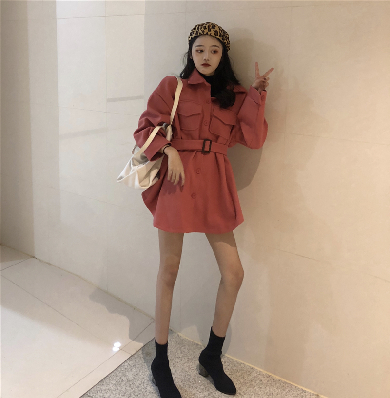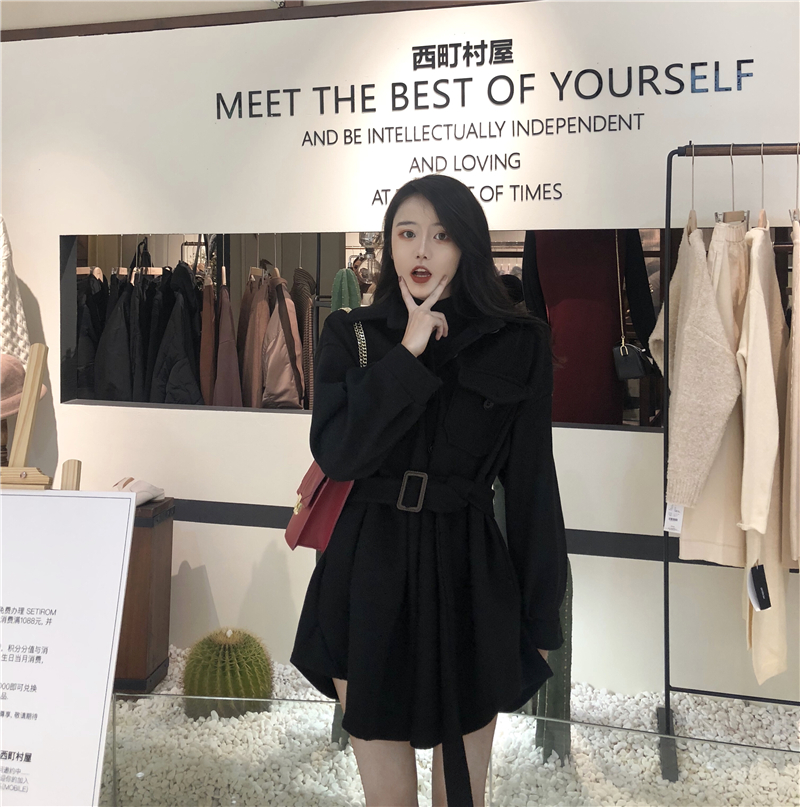 / 港味毛呢新款韓版開衫大衣時尚小香風氣質收腰中長款連衣裙外套女