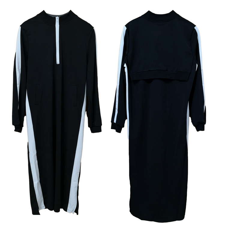 港風裙秋新款韓版時尚chic黑白拼色長款休閑裙立領設計款連衣裙女