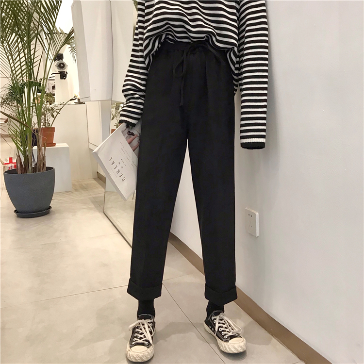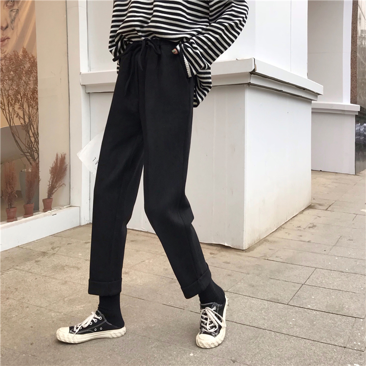/ 秋冬女裝韓版寬松加厚松緊腰休閑褲高腰直筒褲闊腿褲長褲學生褲子