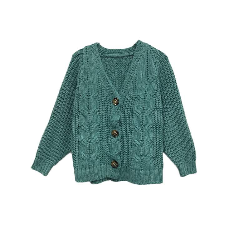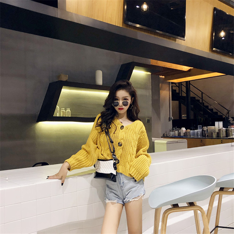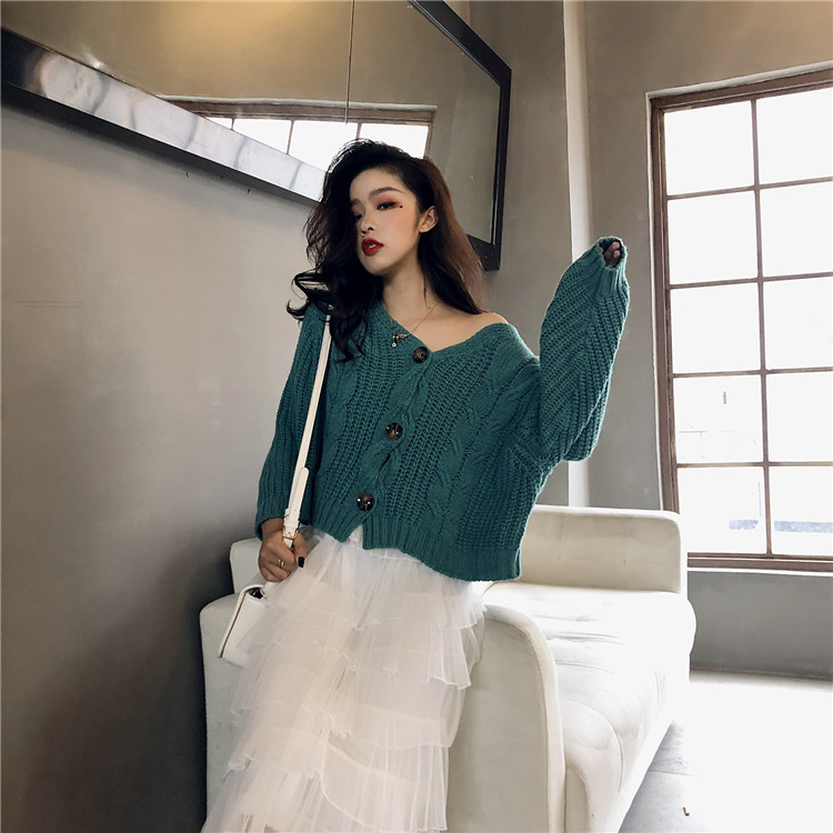 / chic早秋針織衫顯瘦麻花粗線單排扣慵懶寬松純色毛衣外套小開衫女