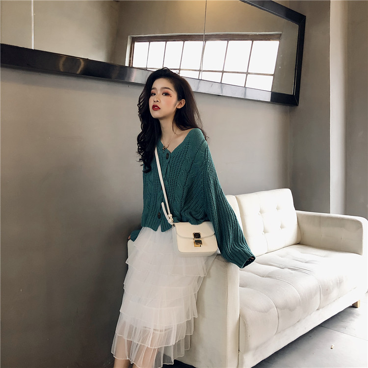 馬海毛網紅毛衣女2018新款針織開衫外套冷淡風針織吊帶連衣裙套裝