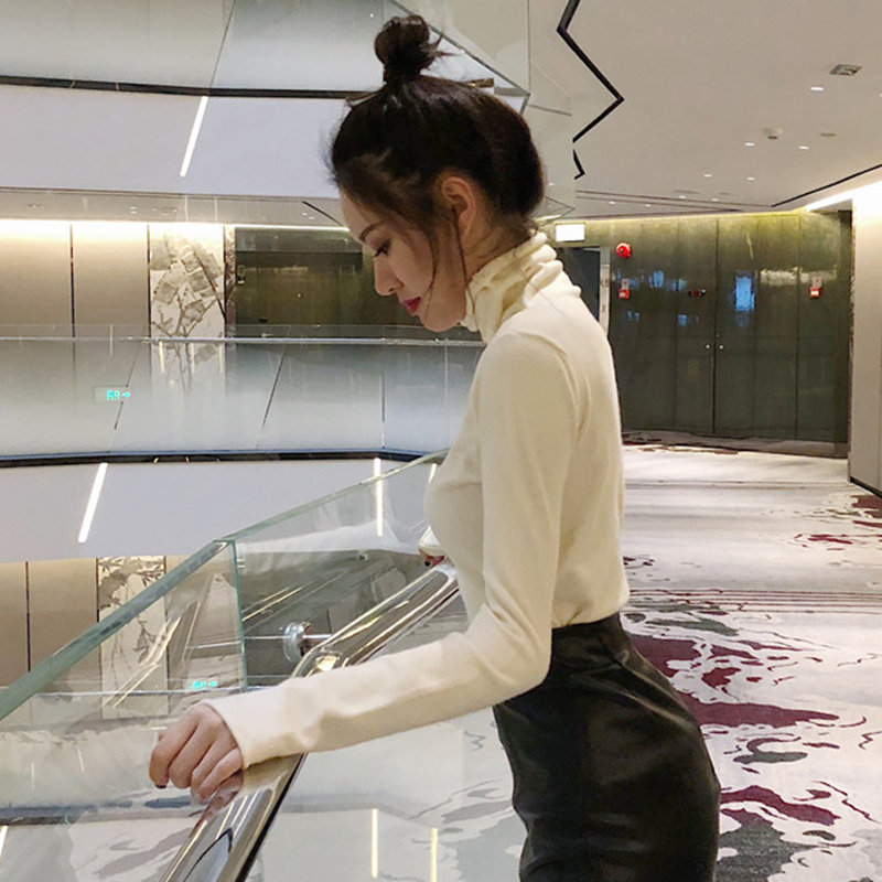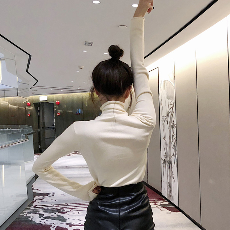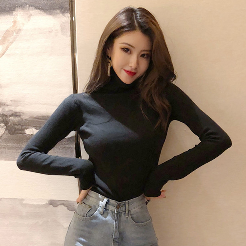 / 高領長袖針織衫女秋冬裝新款外穿套頭黑色上衣學生修身顯瘦打底衫