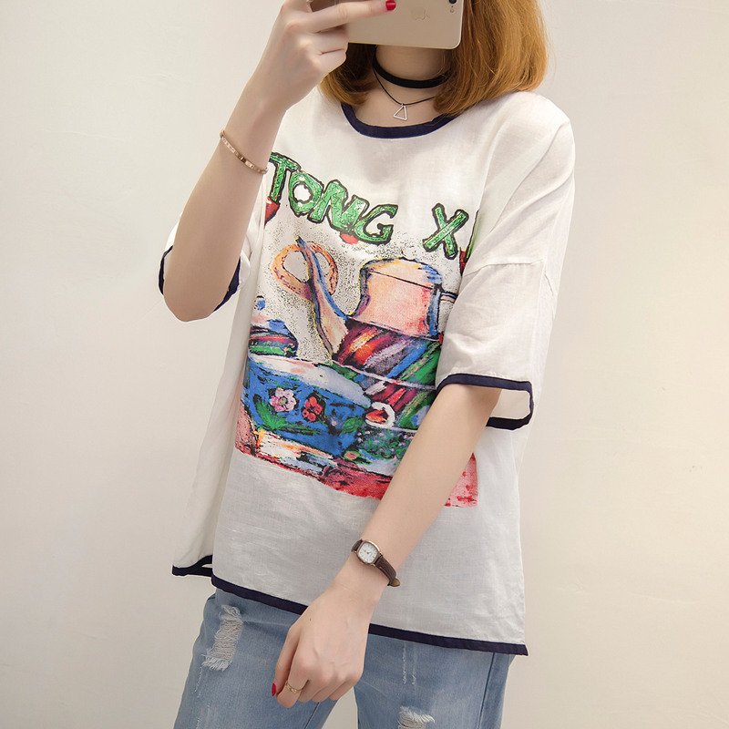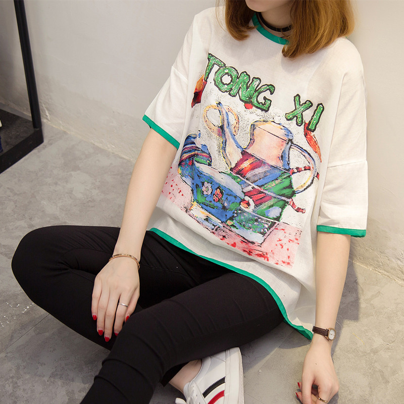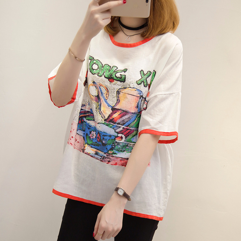白色t恤女韓版寬松港味體恤衫短袖小清新上衣女夏裝新款女裝