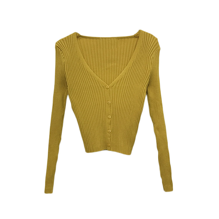 秋裝女2018新款慵懶V領純色韓版顯瘦坑條針織長袖短款毛衣小開衫