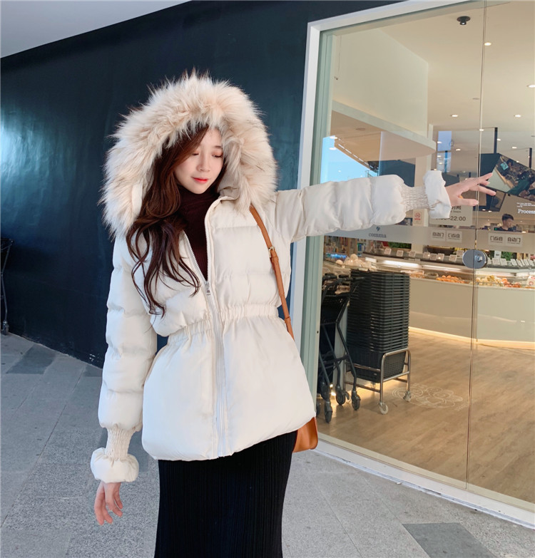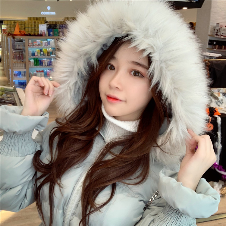 保暖加厚新款韓版甜美少女收腰顯瘦短款大毛領棉衣網紅同款外套潮
