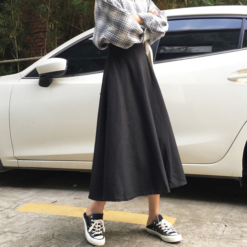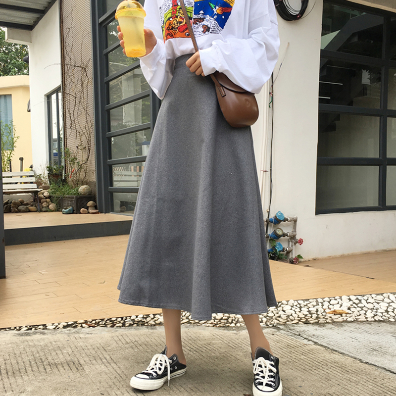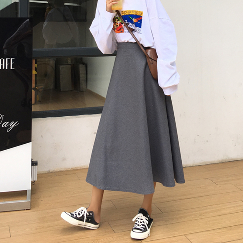 / 2018秋冬女裝新款韓版毛呢中長裙高腰a字半身裙氣質顯瘦黑色傘裙