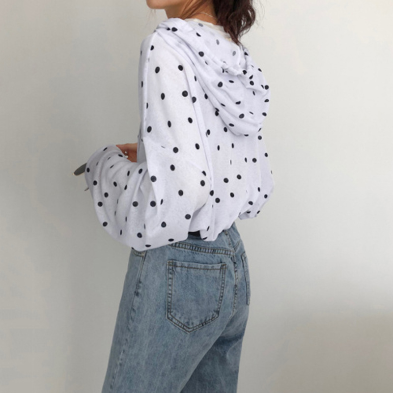 / 波點T恤女2018秋裝新款韓版學生寬松蝙蝠袖上衣少女時尚連帽衛衣