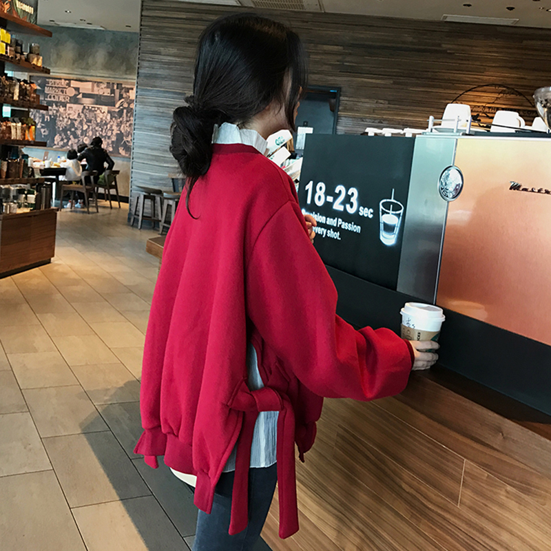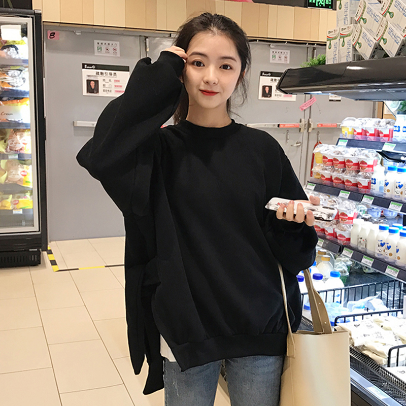 時尚女裝衣服側綁帶套頭衛衣2018秋冬新款韓版寬松燈籠長袖外套潮