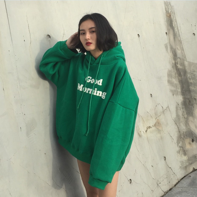 / 早上好英文寬松連帽加絨衛衣女2018新款chic早秋學生韓版套頭上衣