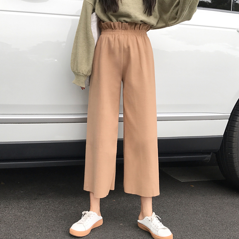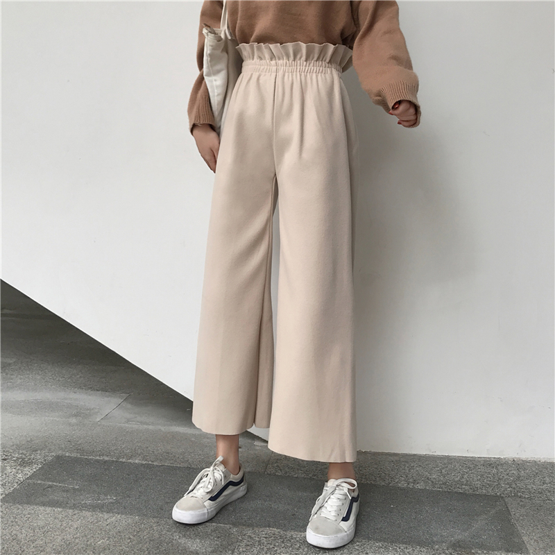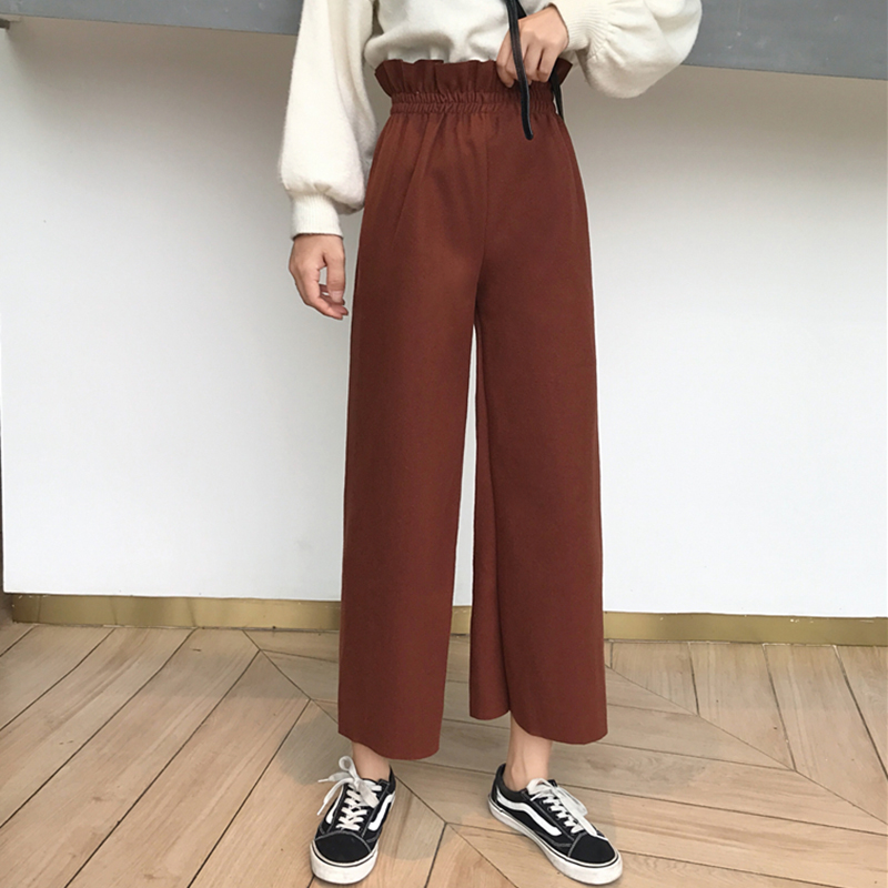 / 寬松闊腿毛呢休閑褲子女秋冬裝新款韓版學生高腰顯瘦復古純色長褲