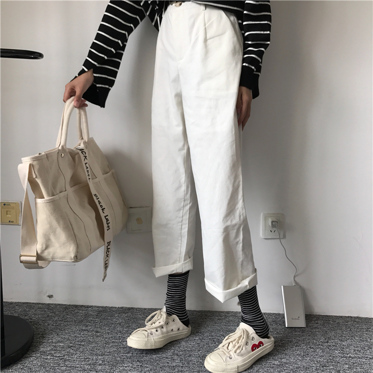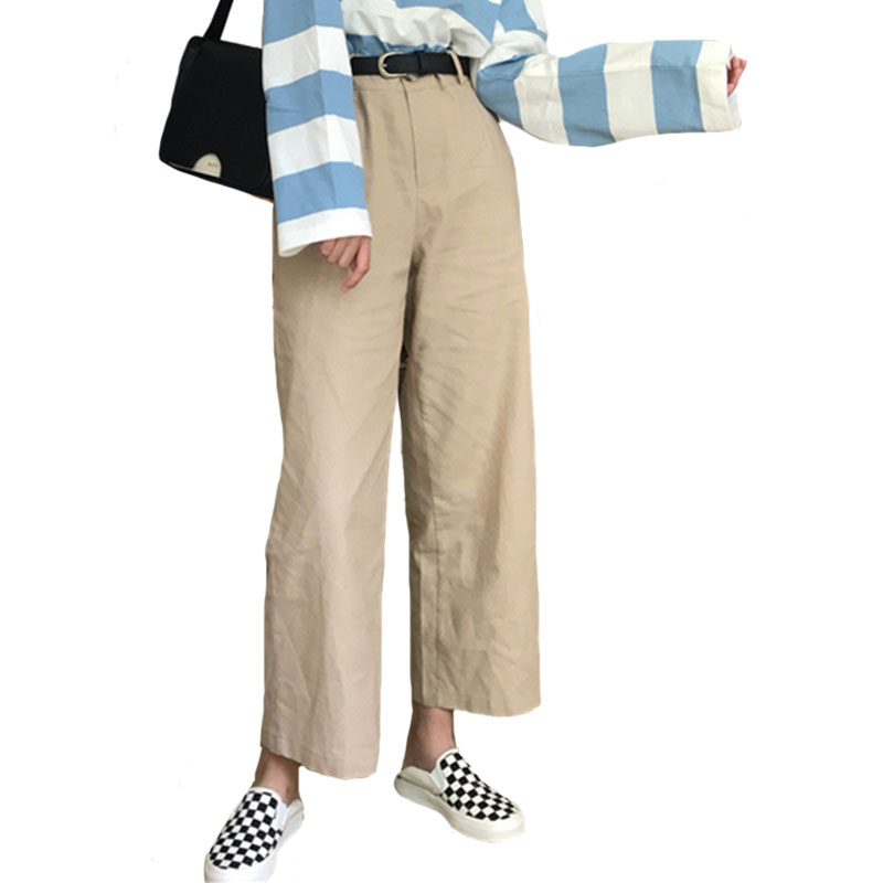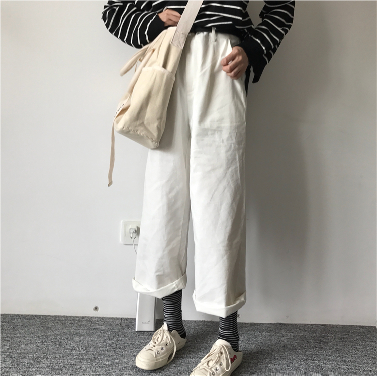 / 秋裝女裝韓版寬松百搭休閑褲顯瘦闊腿褲九分褲學生高腰直筒褲長褲